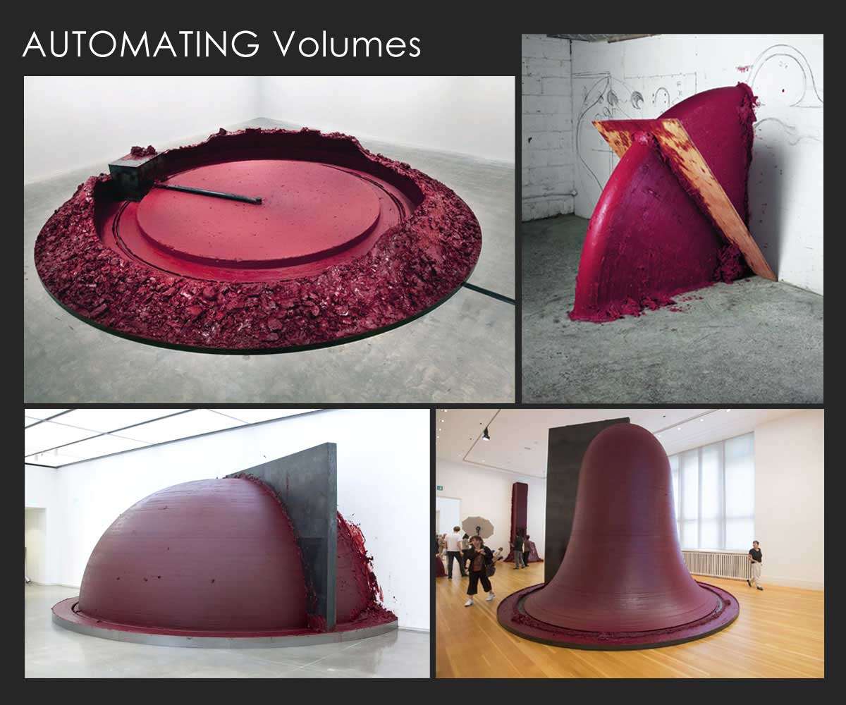 To initiate a systematic and self–generating body of artworks, the artist will begin a horizontal exploration of somewhat related ideas. After a time, she will discover a subject, a material or a process that holds particular fascination for her. At this point, the exploration becomes a vertical progression from one work to another until the creative possibilities within that ever–narrowing field are exhausted or the artist is satisfied. Along the way, the artist will probably discover several new paths that she can then follow toward the creation of a new body of artworks: one set of works giving rise to another. Often, these new paths come about as the unexpected consequence of experimentation and the discovery of "automatated" processes that offer the artist some new understanding.