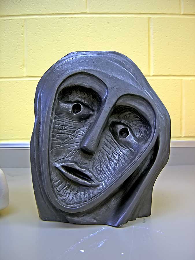MATERIALS & TOOLS: Approximately 10 pounds of pottery plaster (available through the departmental Supplies Store); a strong cardboard box that measures at least 9 x 9 x 9 inches; a large garbage bag; two large mixing pails; water; a maul and a beetle or a mallet, assorted gouges, riflers, sure–forms, chisels, files and sandpaper; acrylic paint and painting tools.