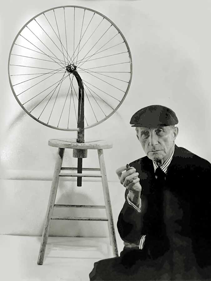 Also, remember that an artist may modify a found-object anywhere along a continuum that begins with very few changes (like Duchamp's, Fountain, 1917 or Prelude to a Broken Arm, 1915), and proceeds from there toward objects that have dramatic alterations (like Duchamp's Bicycle Wheel, 1913). The severity of modification depends, of course, on how the artist intends to use the object (the meaning that she's trying to communicate).