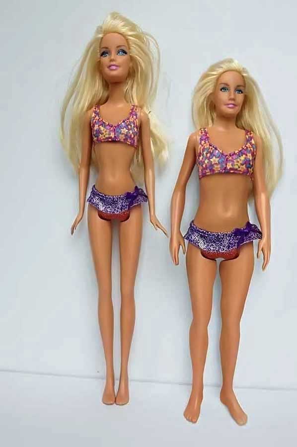 Thus, in an era where women are expected to have hour-glass figures, Matel® has given the Barbietm doll a body-shape that's idealized to an extraordinary degree. If an actual female had the proportions of a Barbietm doll, her waist would measure about twelve inches around while her chest would measure a staggering fifty inches in circumference! One might ask, "What implicit message does the original Barbietm doll give young girls about the qualities of being a woman?" Questions like these have inspired Nickolay Lamm to design an alternate version of the fashion doll: one that has natural proportions, stick-on stretch marks and even scars. In essence, Lamm created an "anti-Barbietm" that beautifully encapsulates a new, enlightened ethos for the 21st century (see the link below).