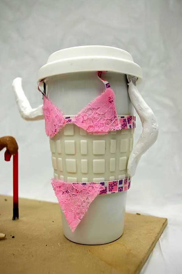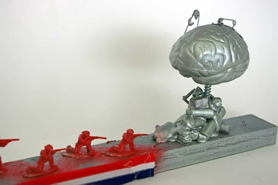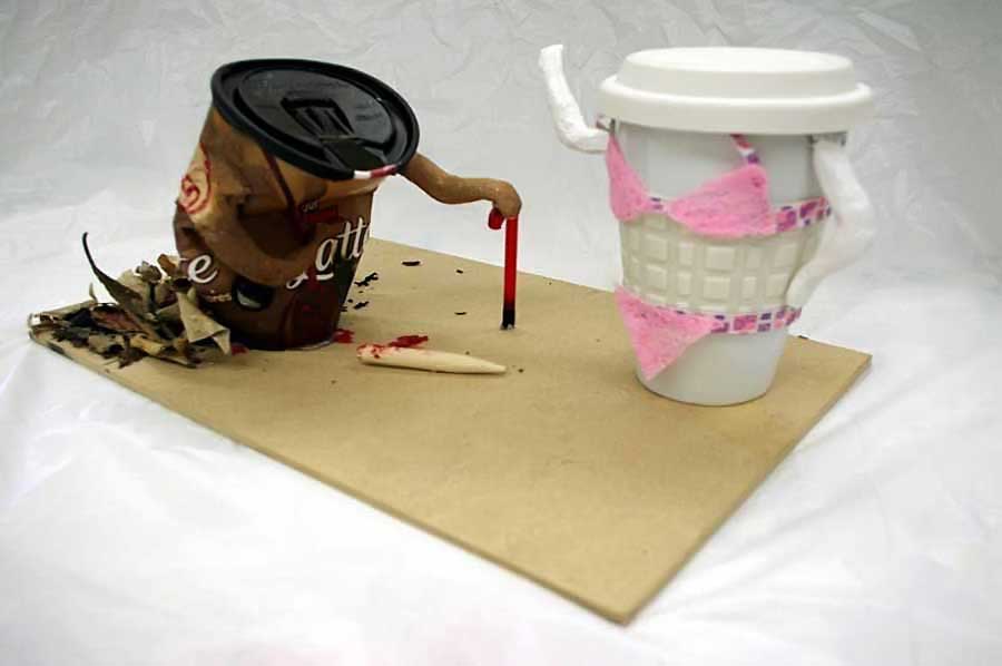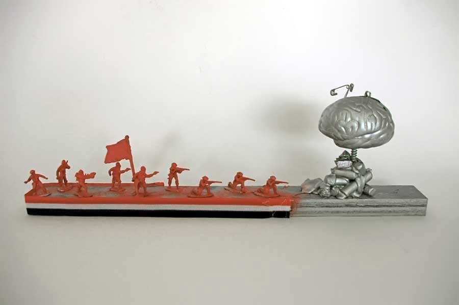 Please note: This project dovetails with Project 6, Conceptual / Visual-Metaphor / Interactive-Sculpture, which describes how found objects are sometimes used to create visual metaphors. These are two, separate-but-related ways of working: both are conceptual in orientation, but the project that I describe here is more analytic (takes apart the various aspects of an idea or an object to discover a deeper and more speculative level of meaning) whereas the visual-metaphor project is more synthetic (brings together several ideas to arrive at a new understanding, with properties that are similar to a metaphor). This is all theoretical, of course, so you should have a closer look at both projects before you begin your work to see which one resonates with you.