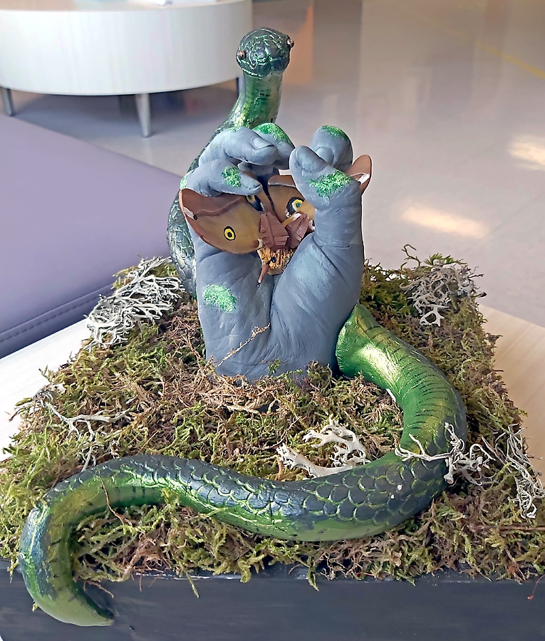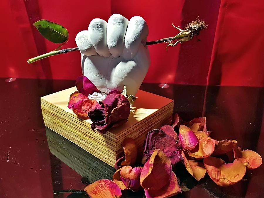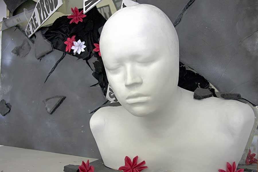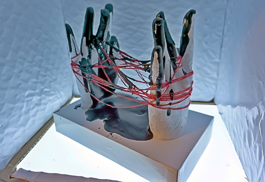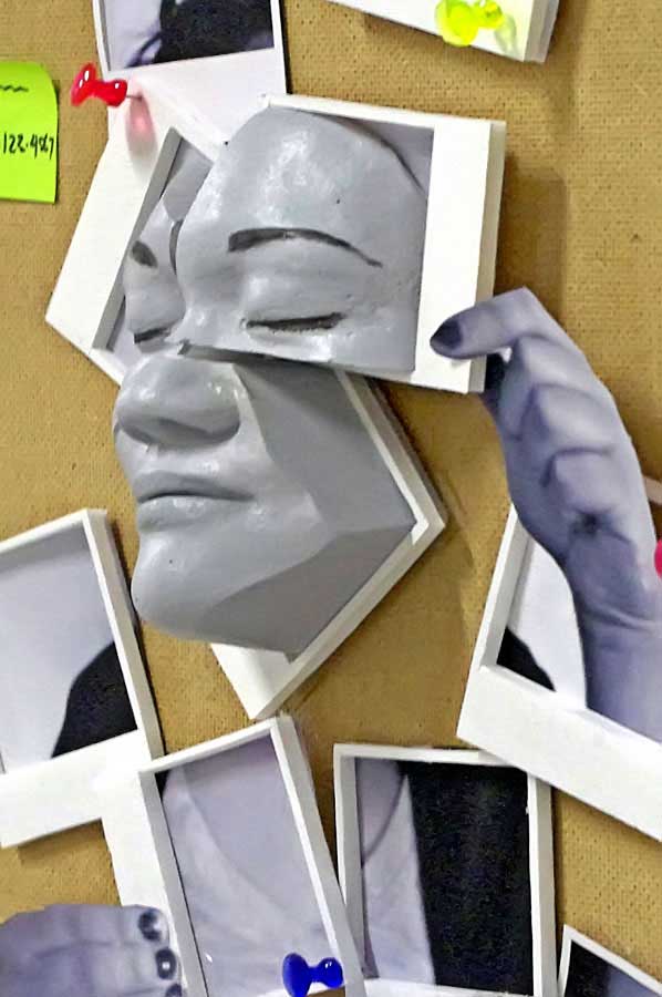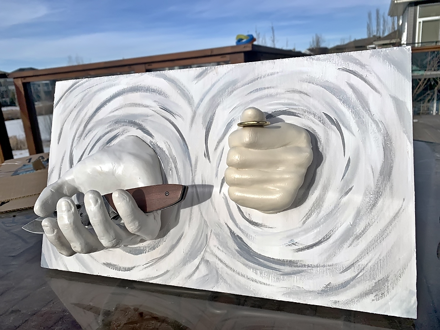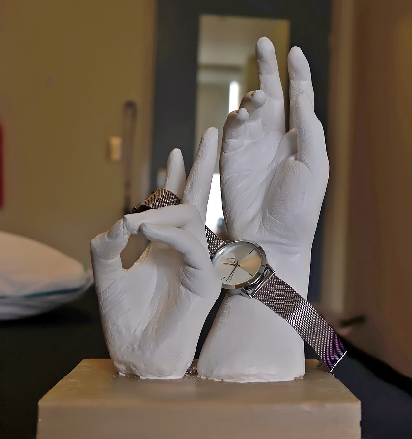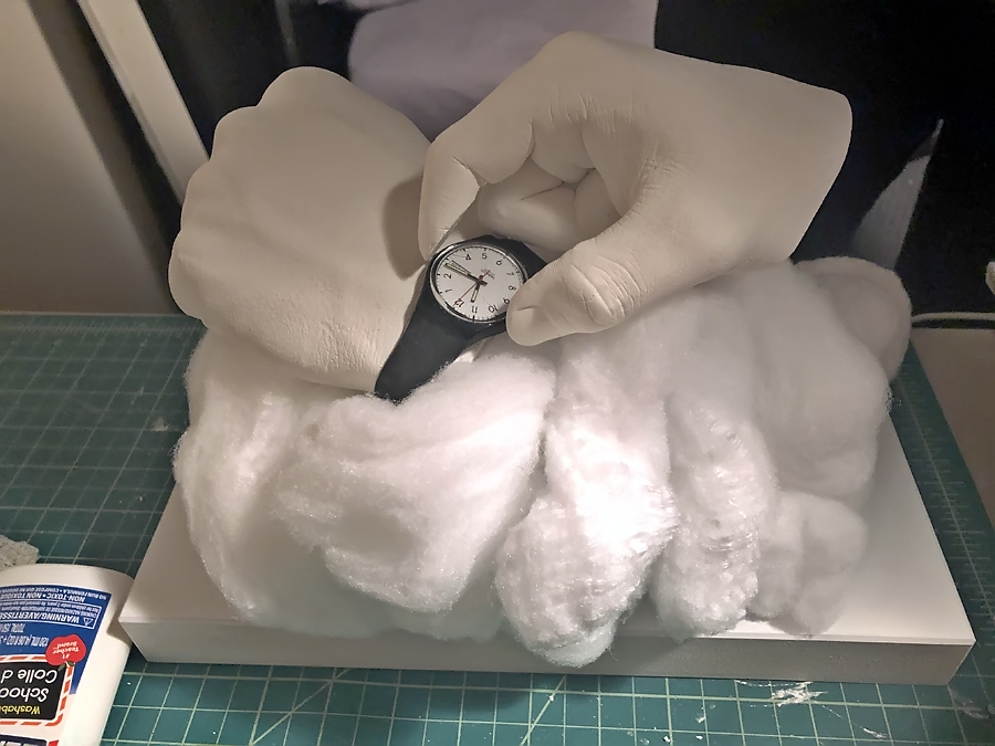AESTHETIC: Your finished work must exhibit a comprehensive understanding of the compositional principles of Emphasis, Variety, Balance, Unity, Rhythm, Proportion and Scale. Your work will also show that you have attended to the details of creating a stable and well-finished lifecast with convincing humanoid features. Your cast(s) and objects must also be affixed to the support in such a way that excess PL400 glue and mechanical fasteners are hidden and all surfaces are clean and free of defects.