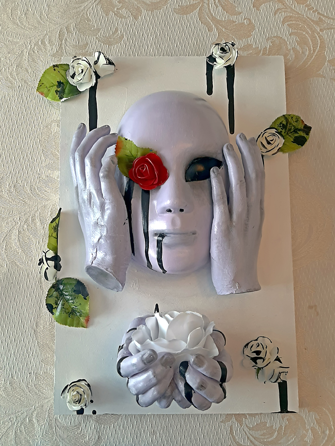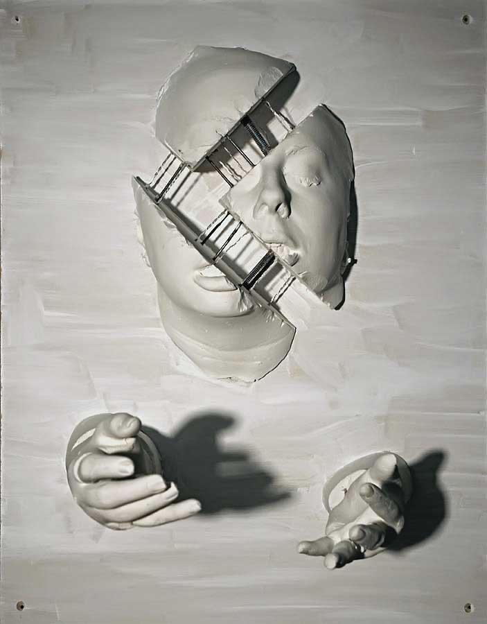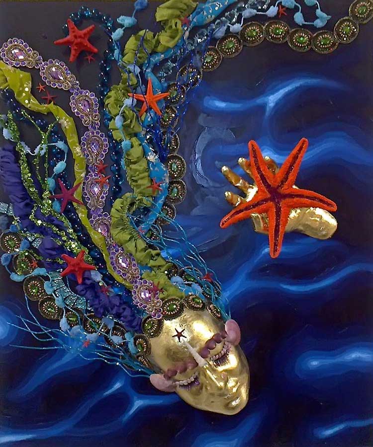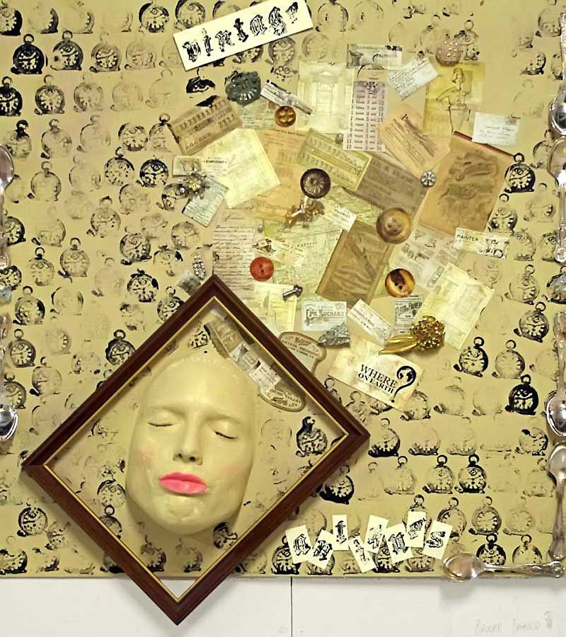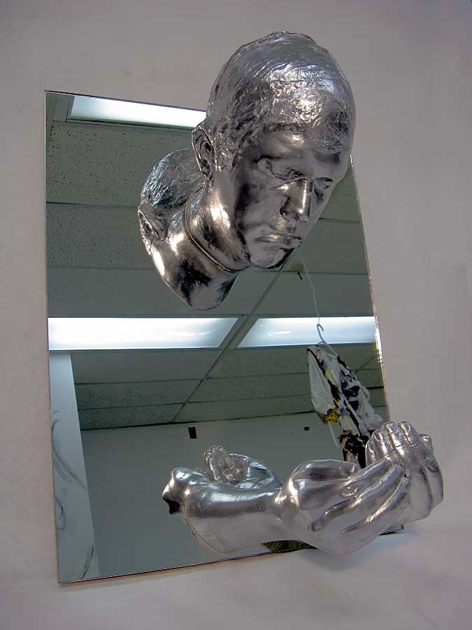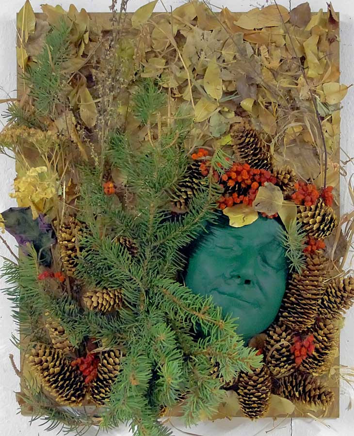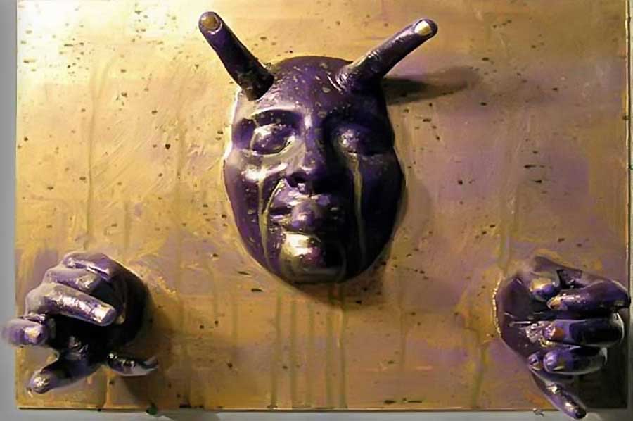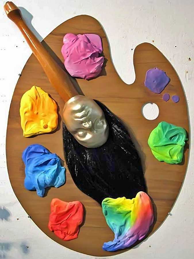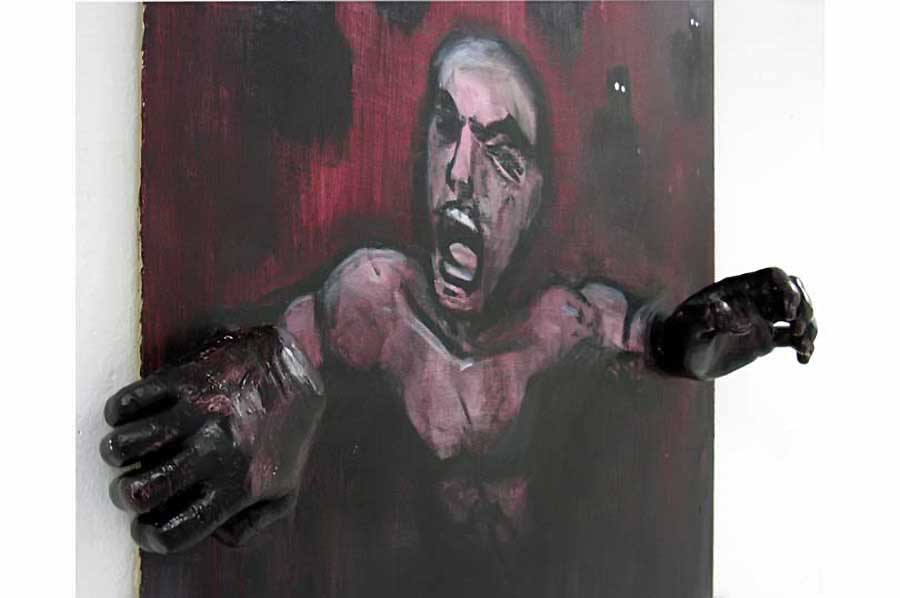 OBJECTIVE: Use found objects, textured materials and acrylic paint on a hardboard support to create a high–relief (or low–relief) combine. For subject matter, your work must include at least one lifecast component that reveals some aspect of your personality. Try to reach past the superficial persona that you project to the world on a daily basis — being a sports fan, chill, ready to party, studious, trying to be likeable, etc. — and choose imagery, poses, facial expression, materials and objects that help you to express your deepest fears, fondest desires or worst memories.
