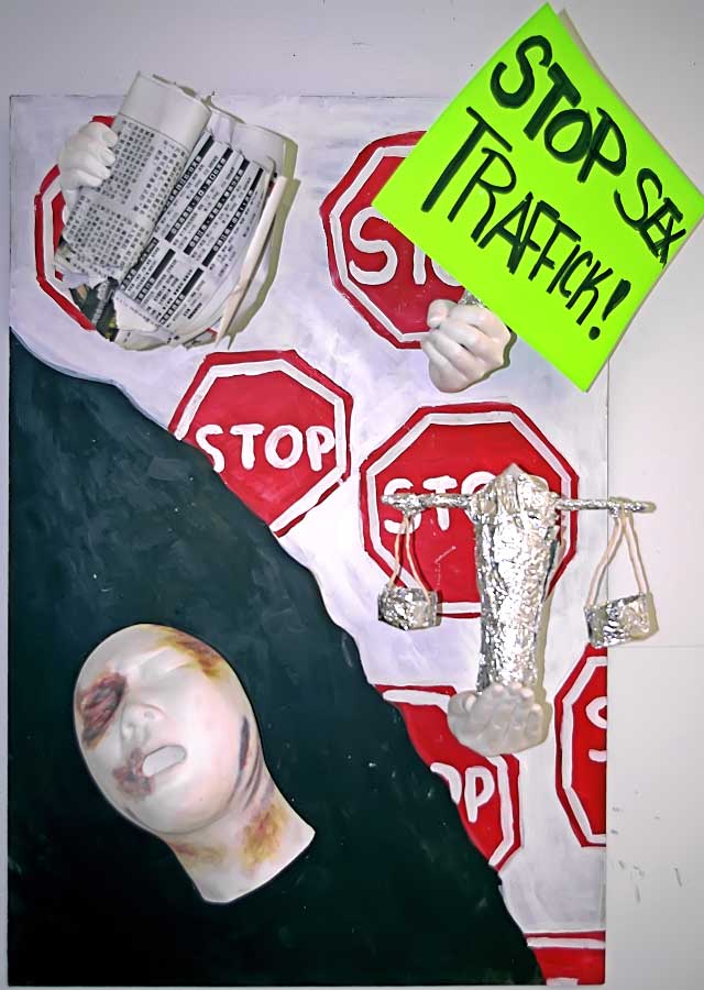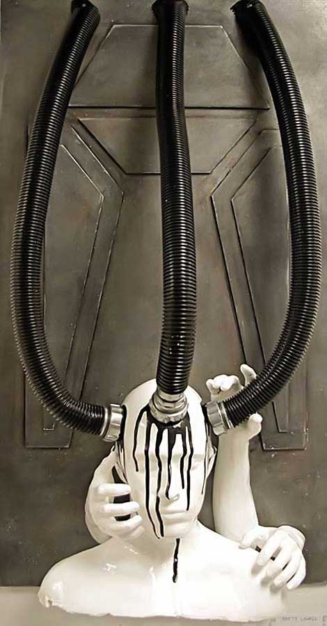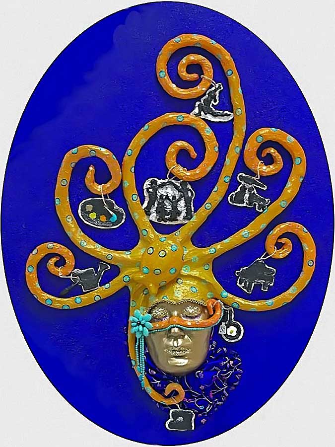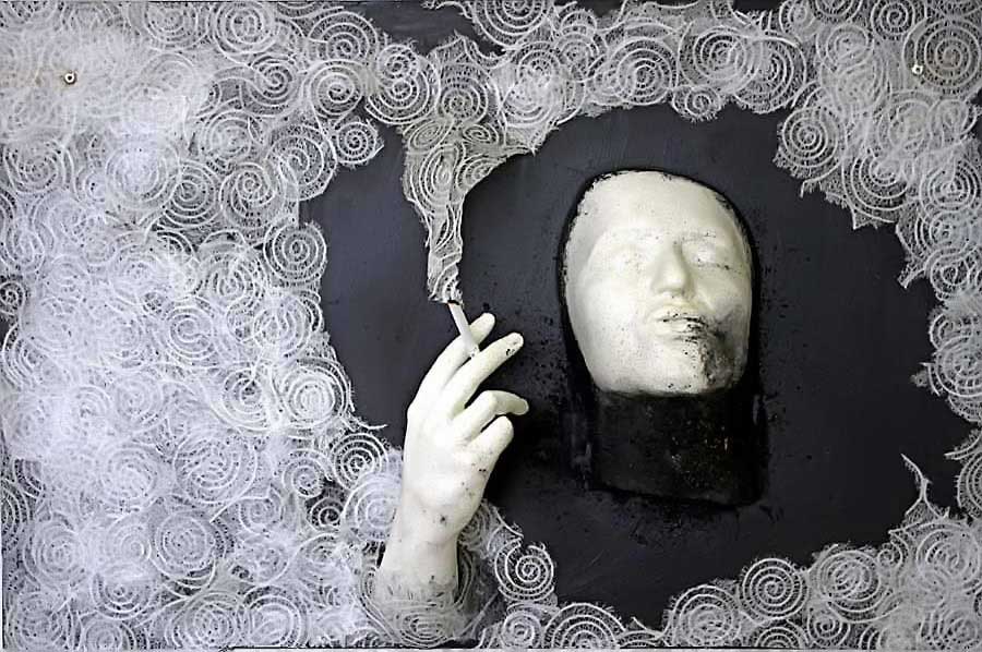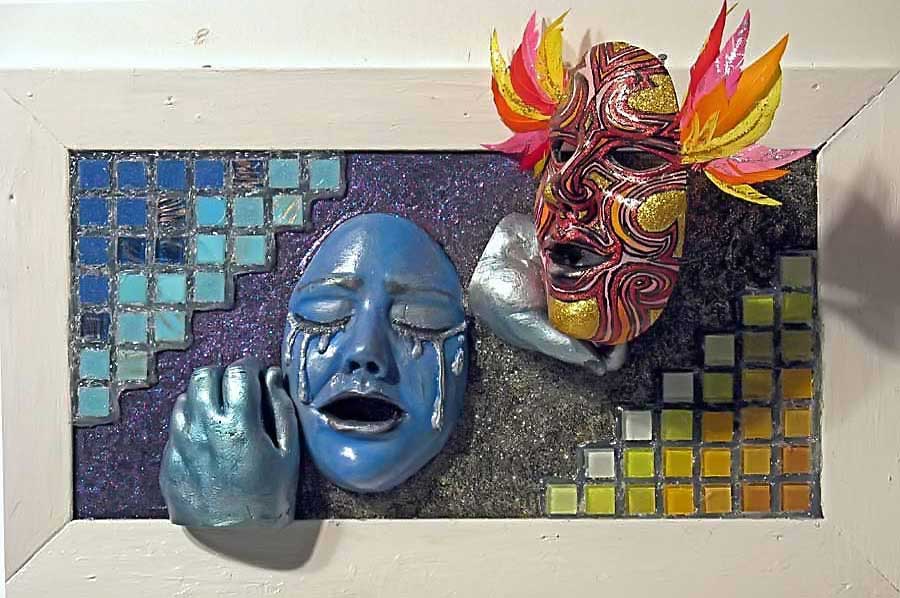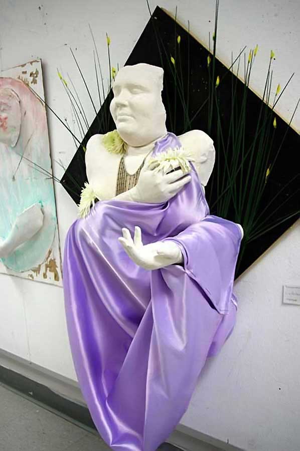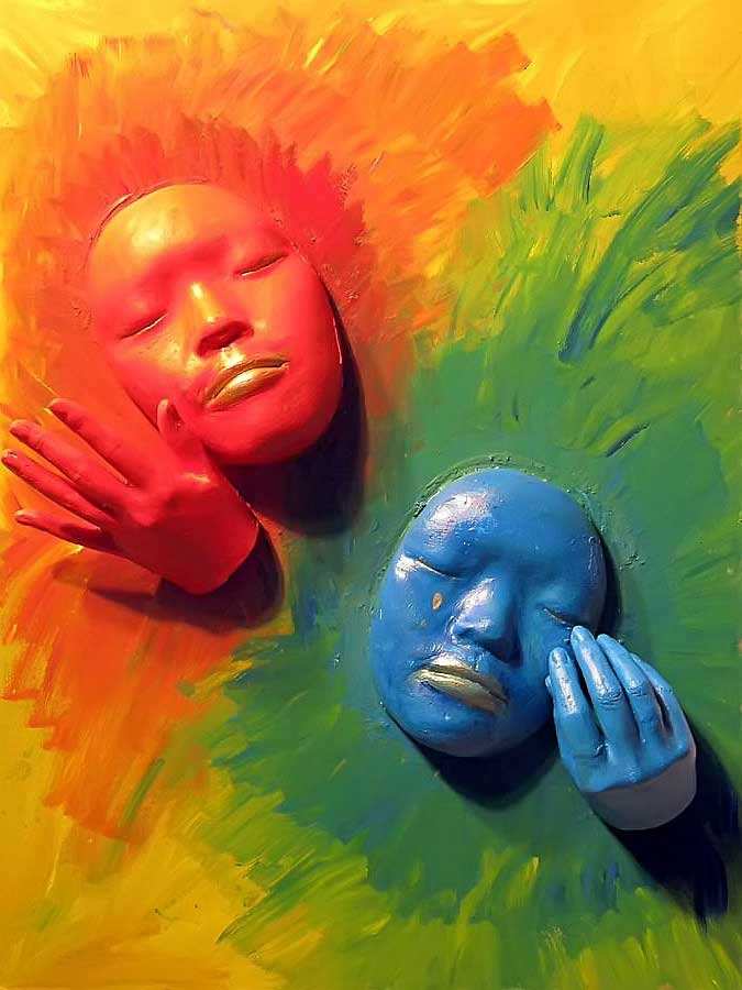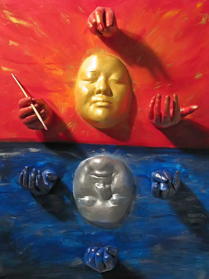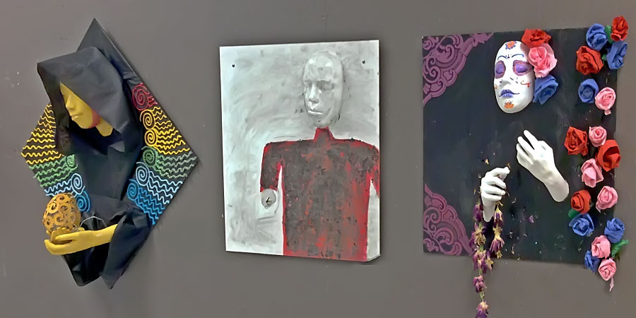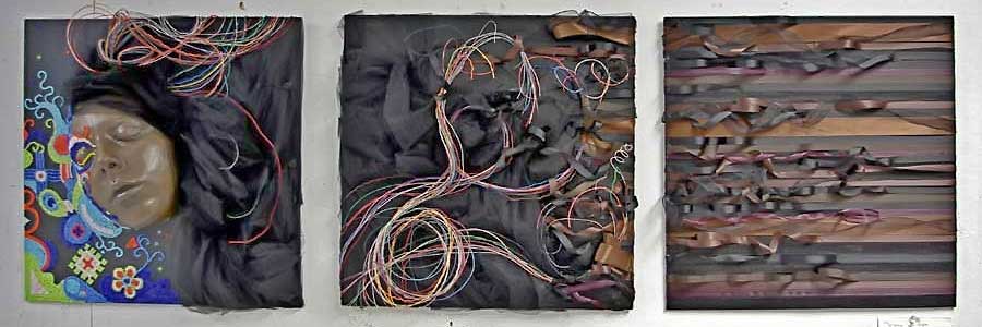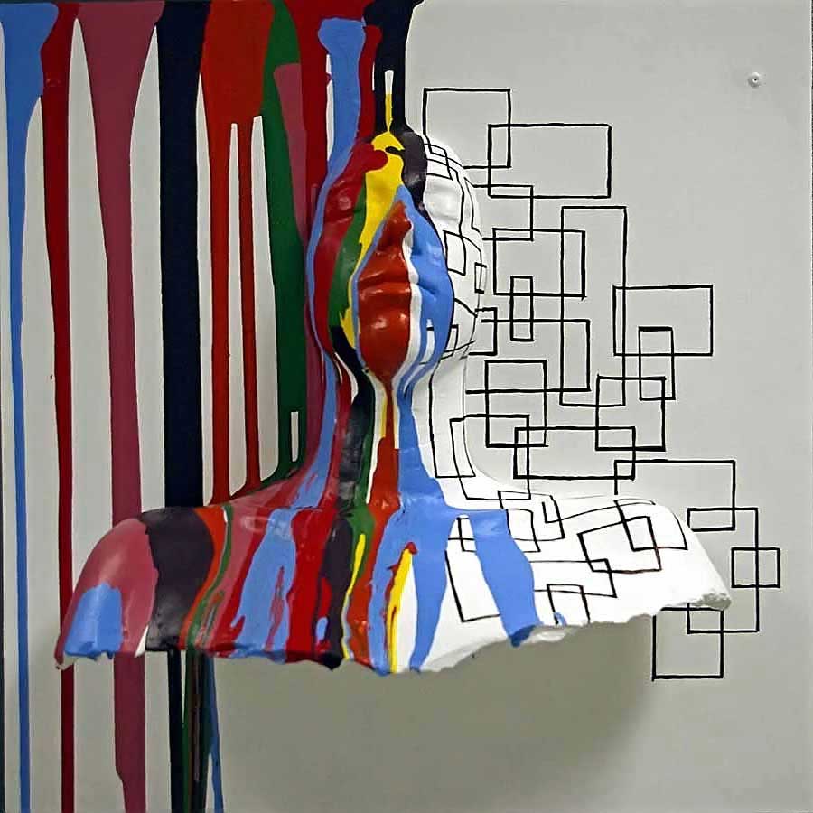 OBJECTIVE: Use found objects, textured materials and acrylic paint on a hardboard support to create a high–relief (or low–relief) combine. For subject matter, your work must include at least one lifecast component that reveals some aspect of your personality. Try to reach past the superficial persona that you project to the world on a daily basis — being a sports fan, chill, ready to party, studious, trying to be likeable, etc. — and choose imagery, poses, facial expression, materials and objects that help you to express your deepest fears, fondest desires or worst memories.