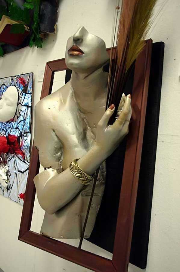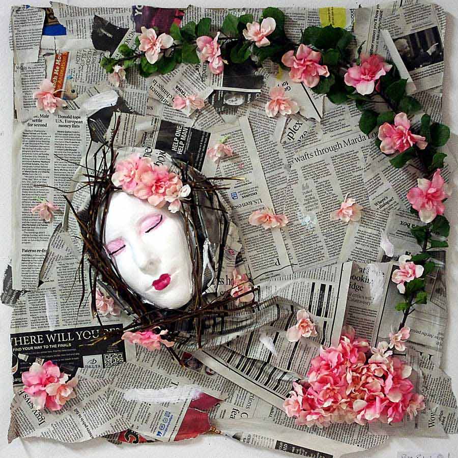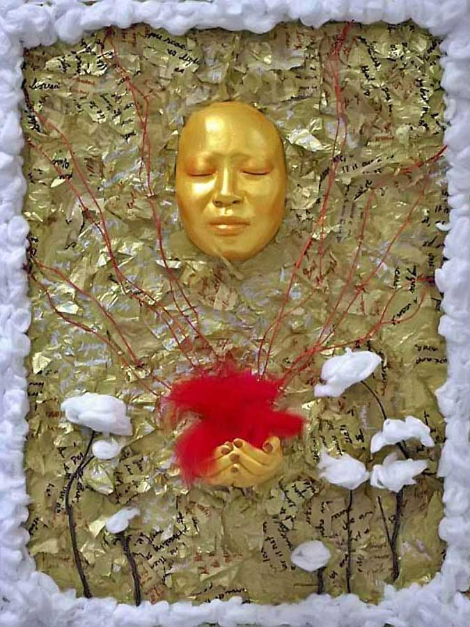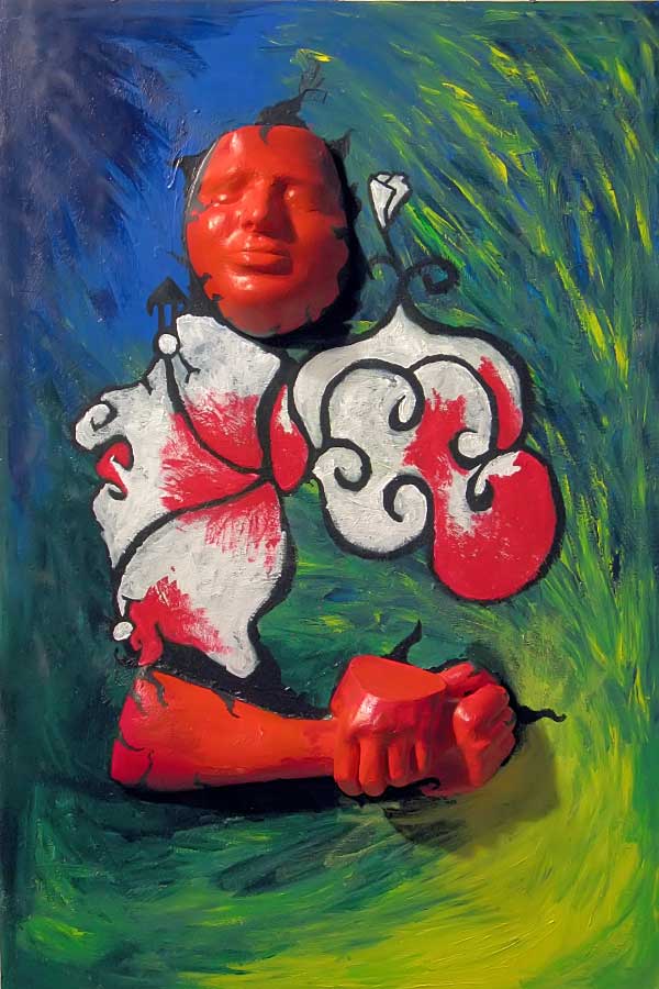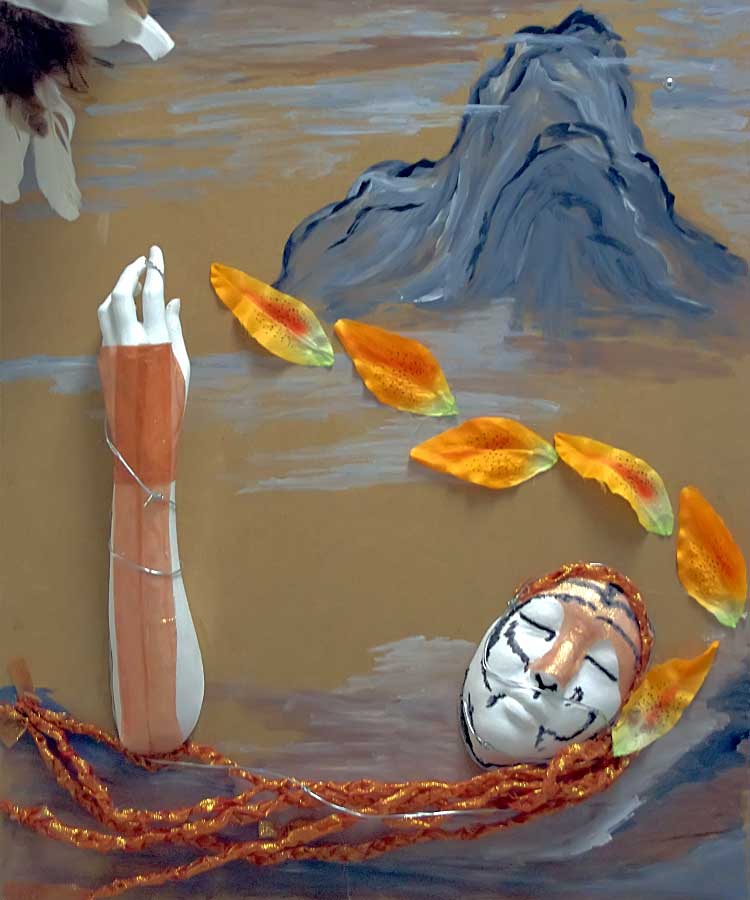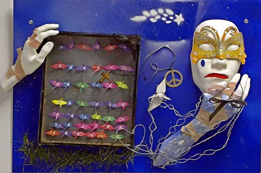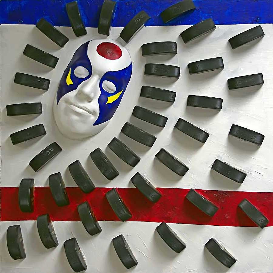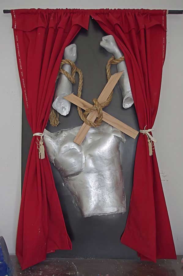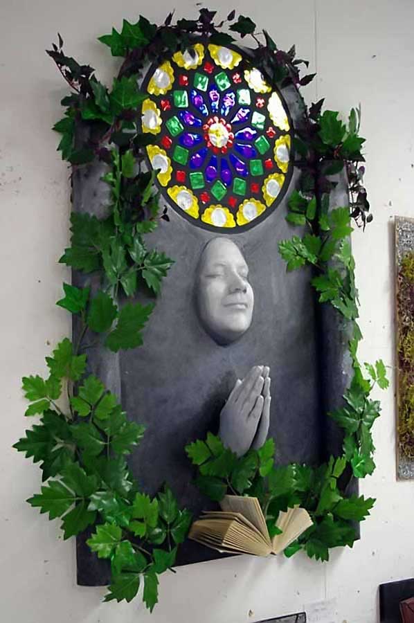 OBJECTIVE: Use found objects, textured materials and acrylic paint on a hardboard support to create a high–relief (or low–relief) combine. For subject matter, your work must include at least one lifecast component that reveals some aspect of your personality. Try to reach past the superficial persona that you project to the world on a daily basis — being a sports fan, chill, ready to party, studious, trying to be likeable, etc. — and choose imagery, poses, facial expression, materials and objects that help you to express your deepest fears, fondest desires or worst memories.