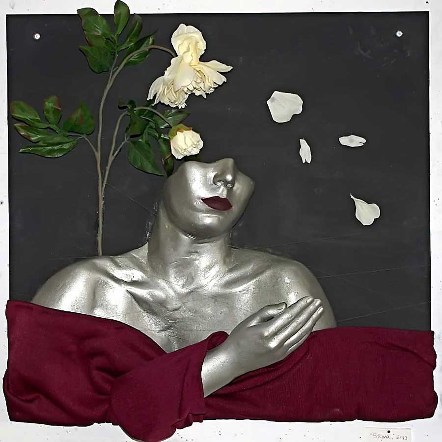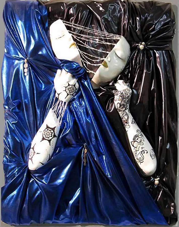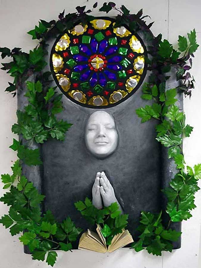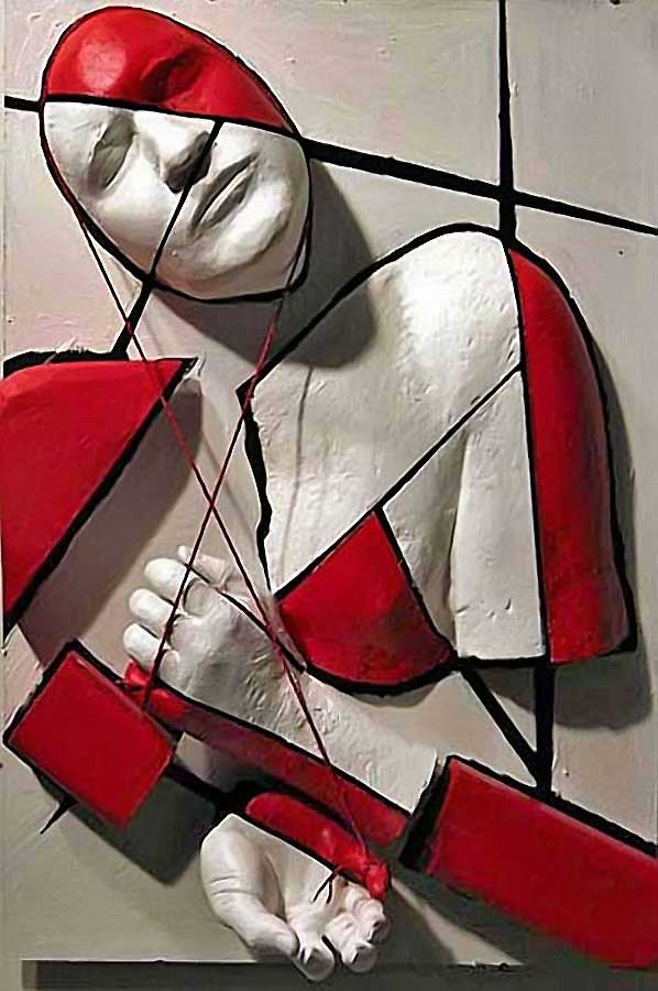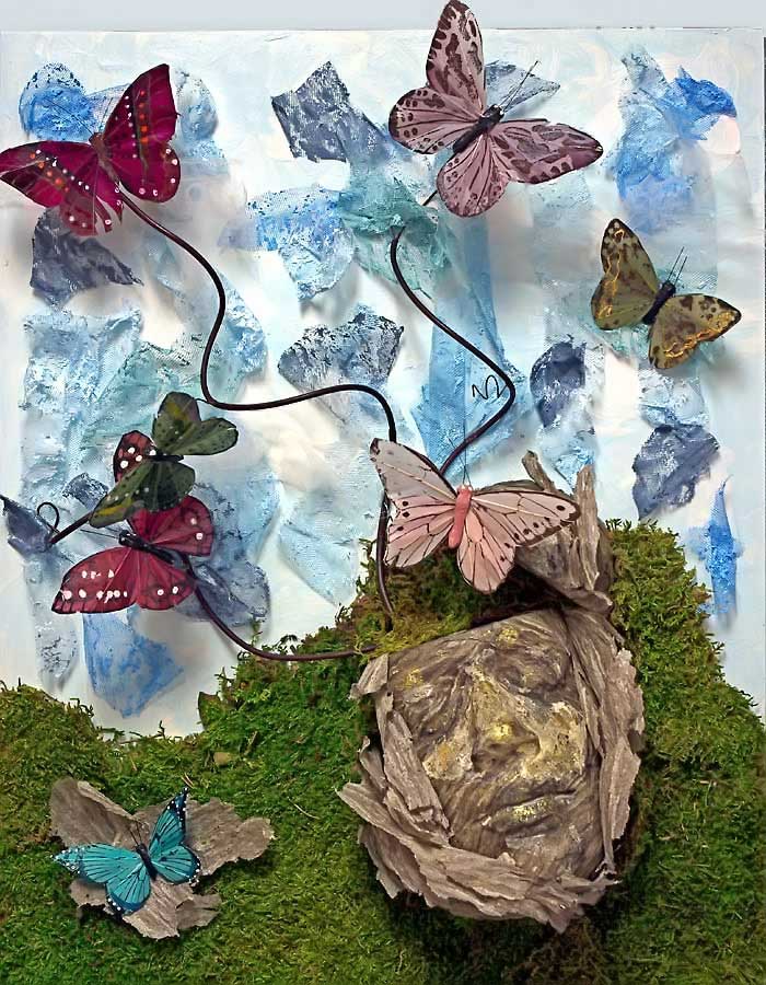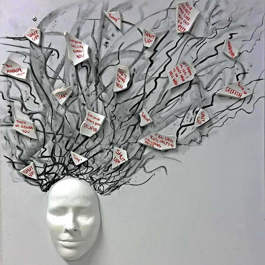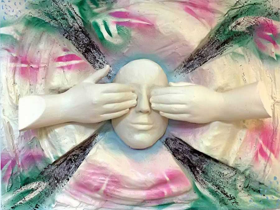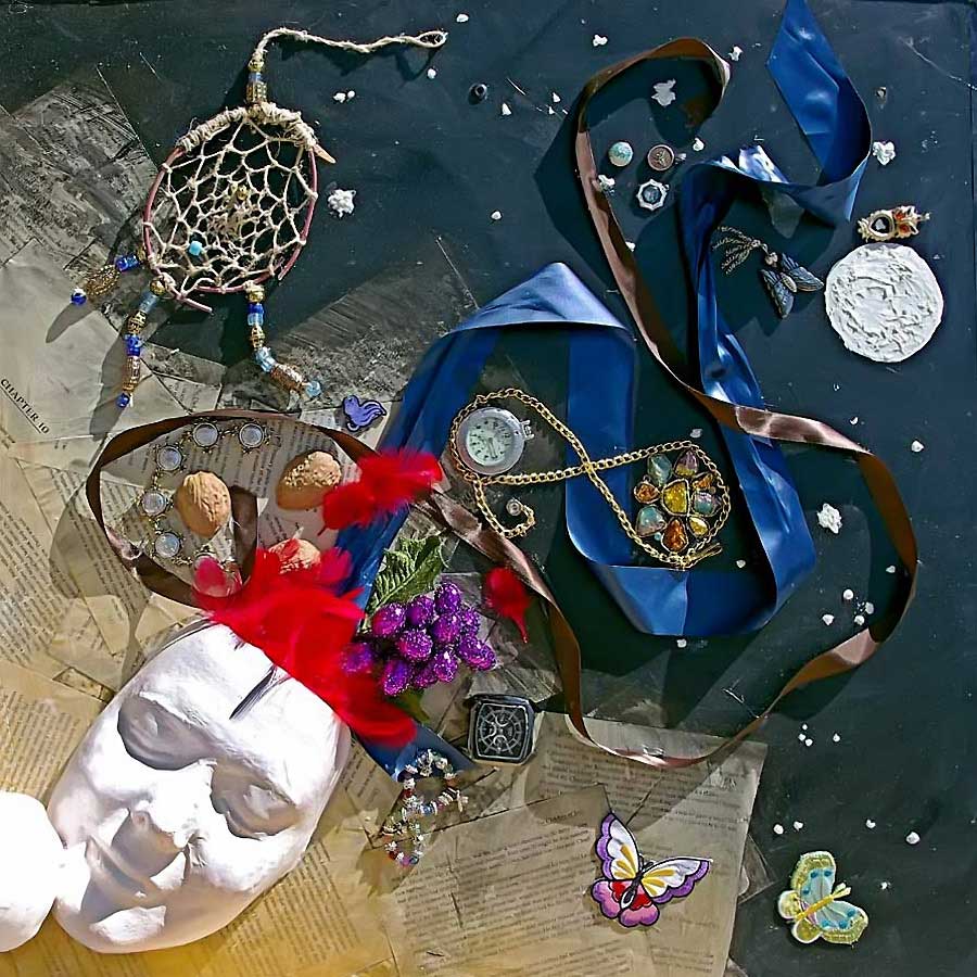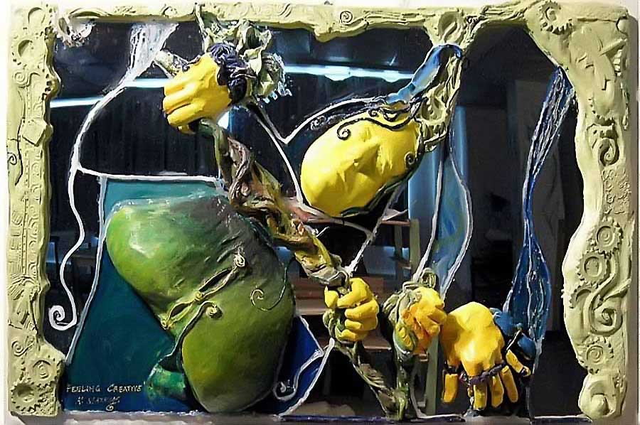 OBJECTIVE: Use found objects, textured materials and acrylic paint on a hardboard support to create a high–relief (or low–relief) combine. For subject matter, your work must include at least one lifecast component that reveals some aspect of your personality. Try to reach past the superficial persona that you project to the world on a daily basis — being a sports fan, chill, ready to party, studious, trying to be likeable, etc. — and choose imagery, poses, facial expression, materials and objects that help you to express your deepest fears, fondest desires or worst memories.