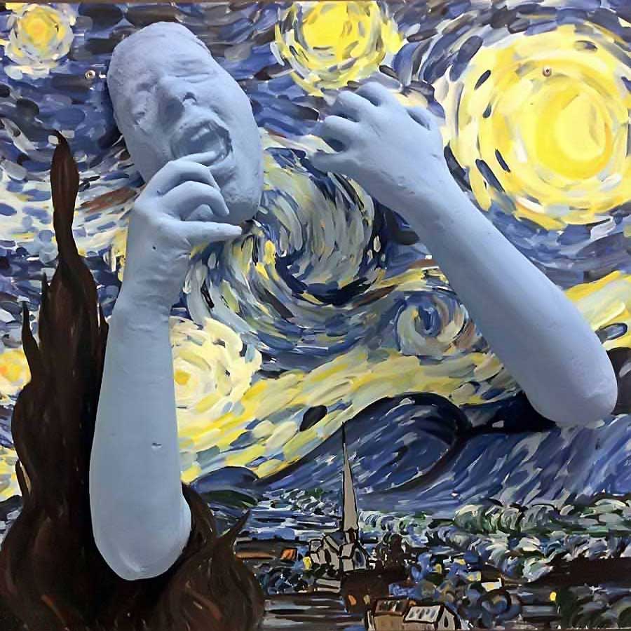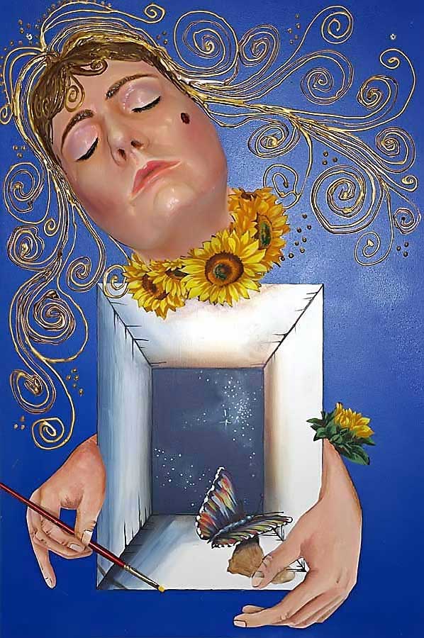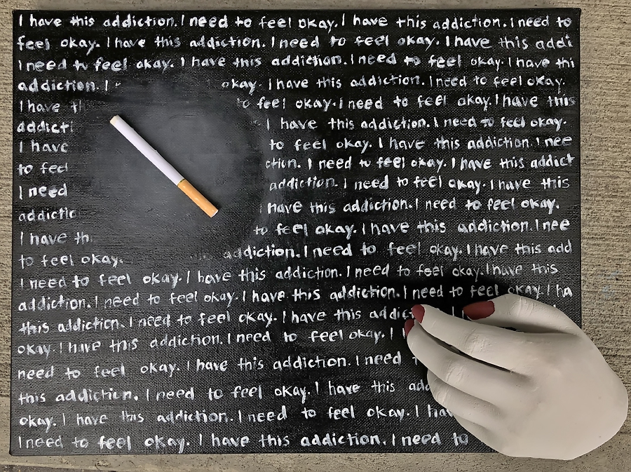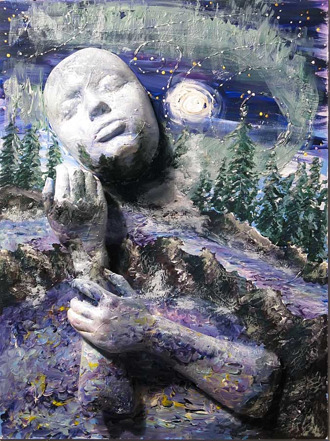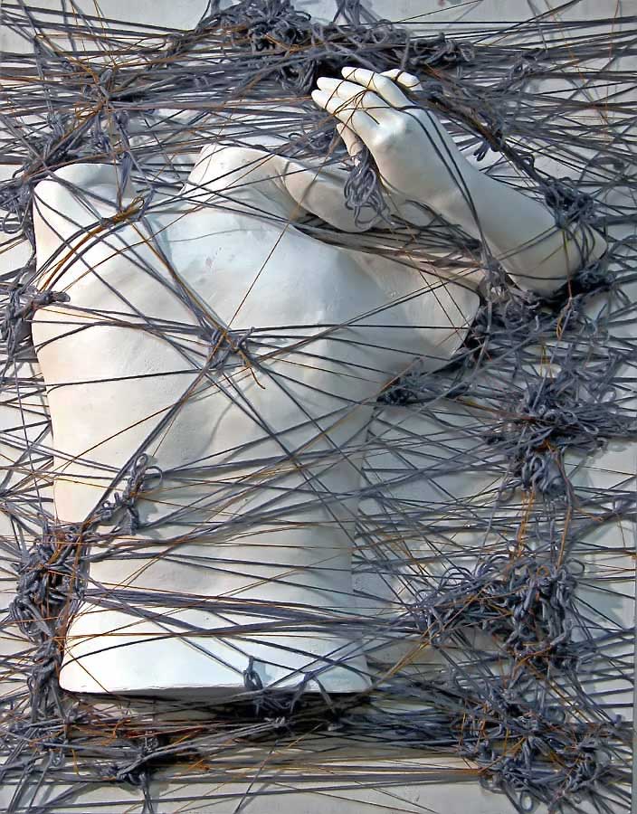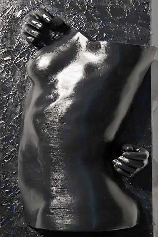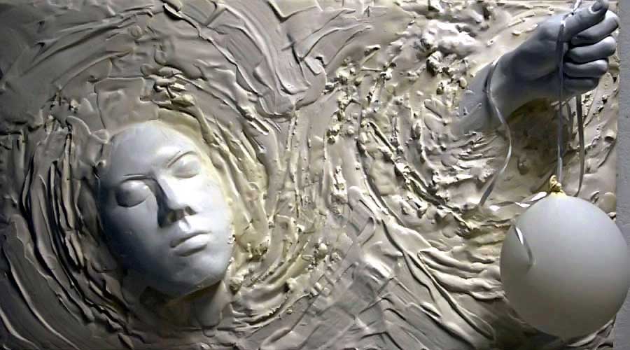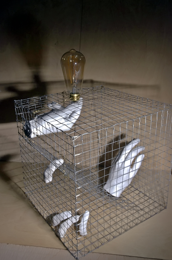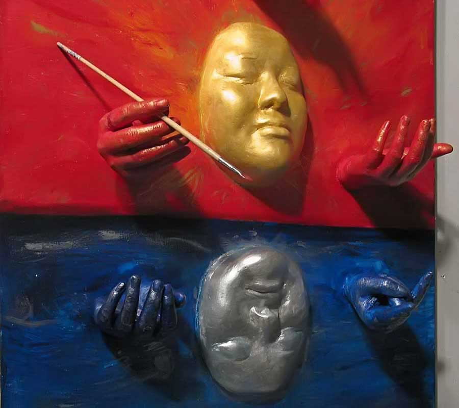 OBJECTIVE: Use found objects, textured materials and acrylic paint on a hardboard support to create a high–relief (or low–relief) combine. For subject matter, your work must include at least one lifecast component that reveals some aspect of your personality. Try to reach past the superficial persona that you project to the world on a daily basis — being a sports fan, chill, ready to party, studious, trying to be likeable, etc. — and choose imagery, poses, facial expression, materials and objects that help you to express your deepest fears, fondest desires or worst memories.