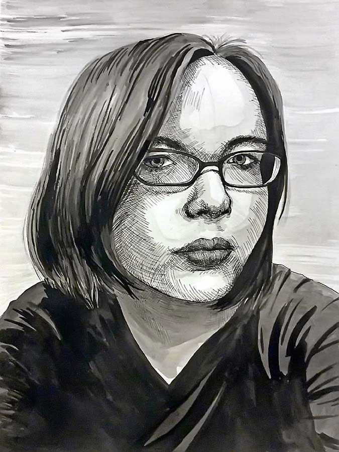 To see a step-by-step tutorial on drawing a self portrait with pen & inkwash, go to: Mimetic, Pen & Ink-Wash Project