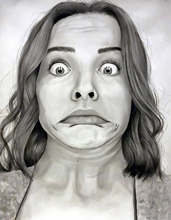 OBJECTIVE: Create an expressive self-portrait of your face, head, neck and shoulders. Your work should be descriptive, but should ALSO express a personal emotion or a state of mind (see the examples below, many of which are exceptionally well-done in their depiction of very subtle emotions, such as contentment, introspection and confusion).
