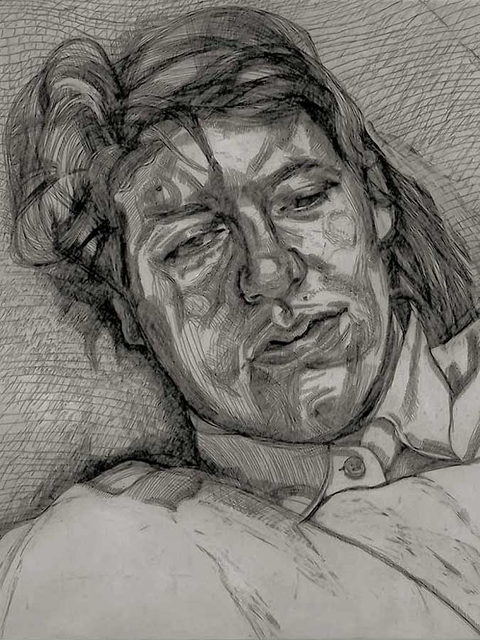 Begin by observing where the shadows fall and where the highlights are located. Examine the face very carefully, in the same way that you do when preparing to draw a still-life object. Different values will become obvious if you focus a single light source (such as a reading lamp) on the face.