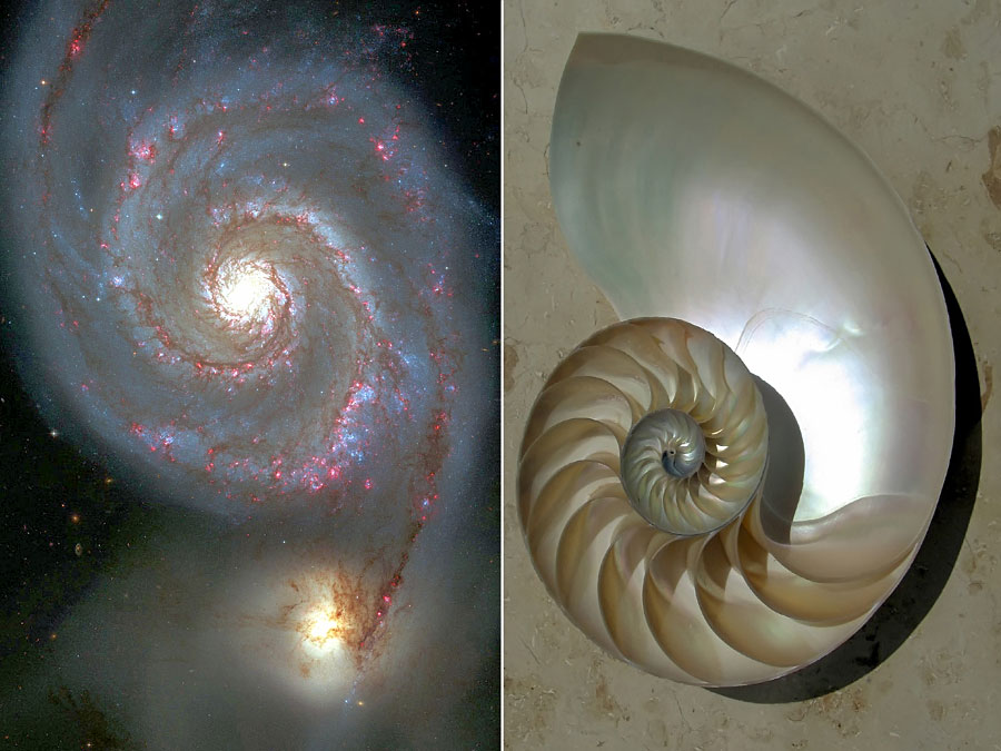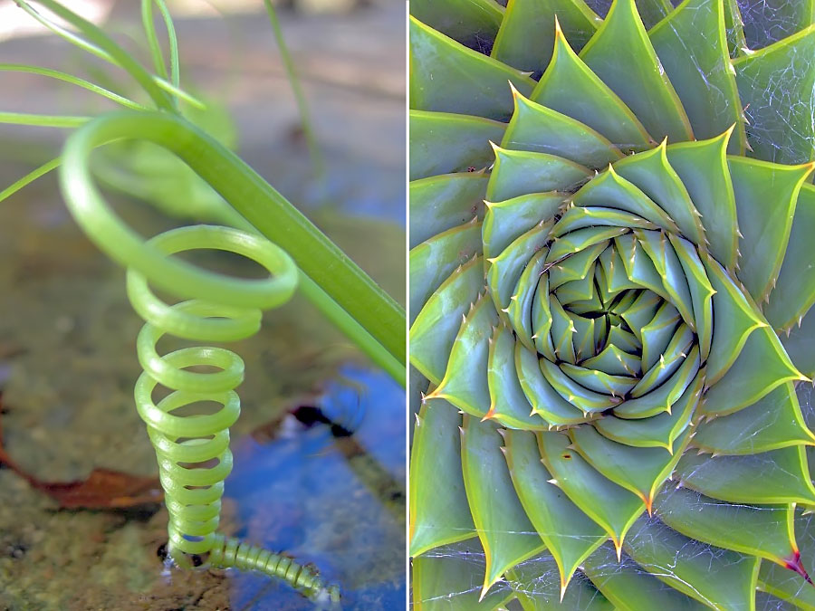Spirals occur everywhere, from the smallest objects on earth - plants, snails, virus - to the largest structures in the known universe: galaxies comprised of hundreds of billions of stars. Not only does the spiral establish a pattern for natural growth in plants, animals and cosmic phenomena, but it also appears in the mathematics of fractal geometry; in seemingly random phenomena, such as hurricanes and tropical cyclones; and is even found within the human body, most notably, in the shape of the cochlea of the inner ear (the word cochlea is derived from a Greek word that means "snail").
