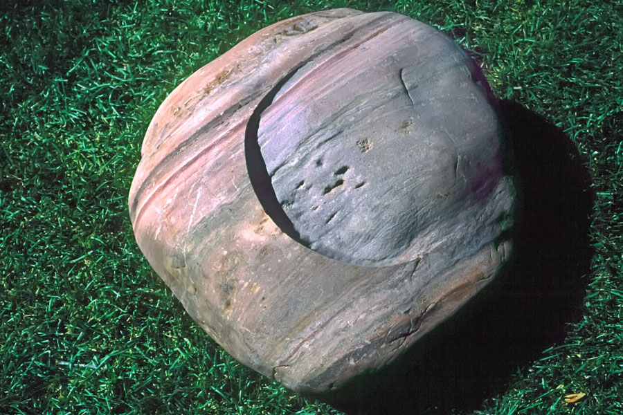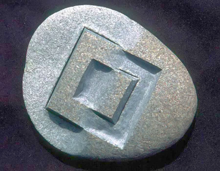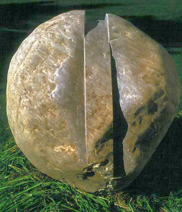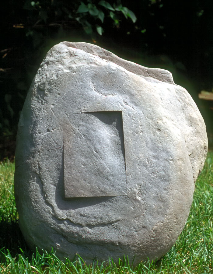 In short, the meaning that I am constructing with my carved stones is of an extra-ordinary kind. By placing a mathematical shape on a stone whose organic contours are marked with the history of its Becoming, I am emphasizing the contingency of presence (the stone) within the context of conscious Being and the quest for something ideal (mathematical perfection). On a more transcendent level, the wedding of matter with Mind is an attempt to real-ize the infinite unknown (Existence) that exists apart from and as part of the finite known (the phenomenal world). It is an attempt to envision the counterpart of temporal Being: eternal non-being.