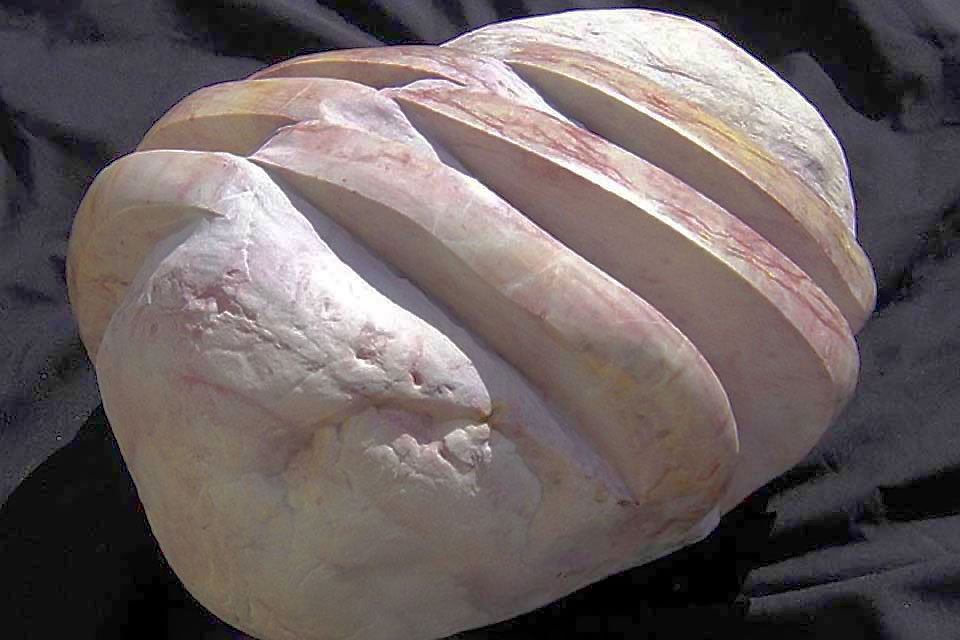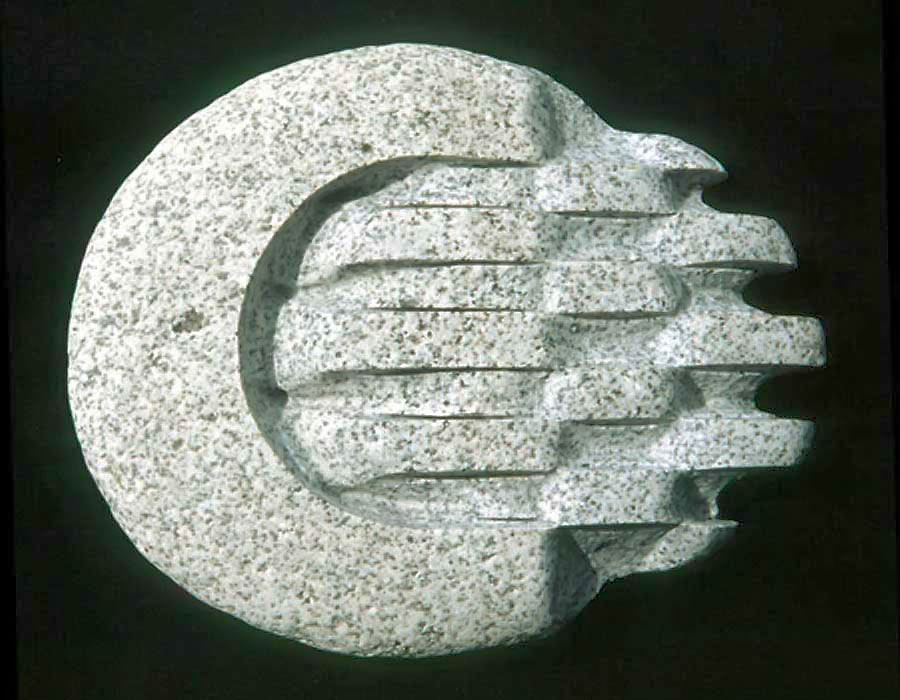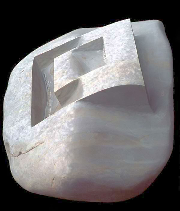 The union of stone with mathematical shape is, therefore, not the sort that Burger describes as a disillusionment of the subject "...in favor of an immediacy in which all opposites are blandly dissolved...." (Burger, 1991: 5) The state that Burger envisions is a "watering-down" of Being in which one element dilutes the efficacy of the other; like mixing complimentary colours to create a neutral gray that retains little of the original character of its constituent elements. The kind of unitive experience that I am discussing is more analogous to the effects that one achieves when placing one complimentary colour next to another; the contrast holds both in a dynamic state of tension in which neither colour loses its original properties. Instead of bland disillusionment, juxtaposition emphasizes the richness and vibrancy of each. It is like a marriage in which both partners guild one another through complimentary interaction. Jose Arguelles, an aesthetics philosopher, explains that a wedding such as this is "...synergistic, and not at all like adding two and two and getting only four." (Arguelles, 1975: 286) It is the synergistic effect of uniting contrasting and complimentary properties and ideas that provides my carved stones with their tension and dynamism. It is the unseen force that animates each piece.