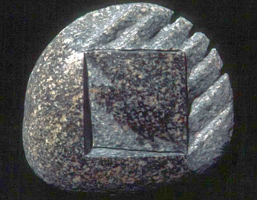 In contrast to the stone's history, is the mathematical shapes that I carve into these objects. As mentioned in the first section, one may consider the intellectual abstractions of geometry to be the real-ization of something idyllic. In Platonic terms, the square and circle are transcendent exemplars for things within the phenomenal world; that is, they exist as intelligible prototypes for things that aspire to mathematical perfection. In a Kantian sense, mathematical forms, similar to those of Euclidean geometry, come closer than anything else to giving an a priori sense of space. (Kant, 1900: 32-35) Thus, shapes such as the square and the circle seem to transcend all place and history. They seem to have an unconditioned quality. They appear to exist apart from other conditions in an eternal space that contrasts with the finitude and history of concrete matter. By incorporating these idealized shapes within the crude materiality of natural stone (and other unrefined materials), I create situations in which the precision of the mathematical shape (the abstracted concept) contrasts and compliments the imprecision of the material object (phenomenal reality), and vise versa. From this perspective, the unconditioned shape embodies the principle of order and harmony and contrasts with the conditioned stone which, in turn, embodies the notion of chaos and circumstance. It is in this sense that one may consider my carved stones to be "abstract idea" set beside "concrete material".