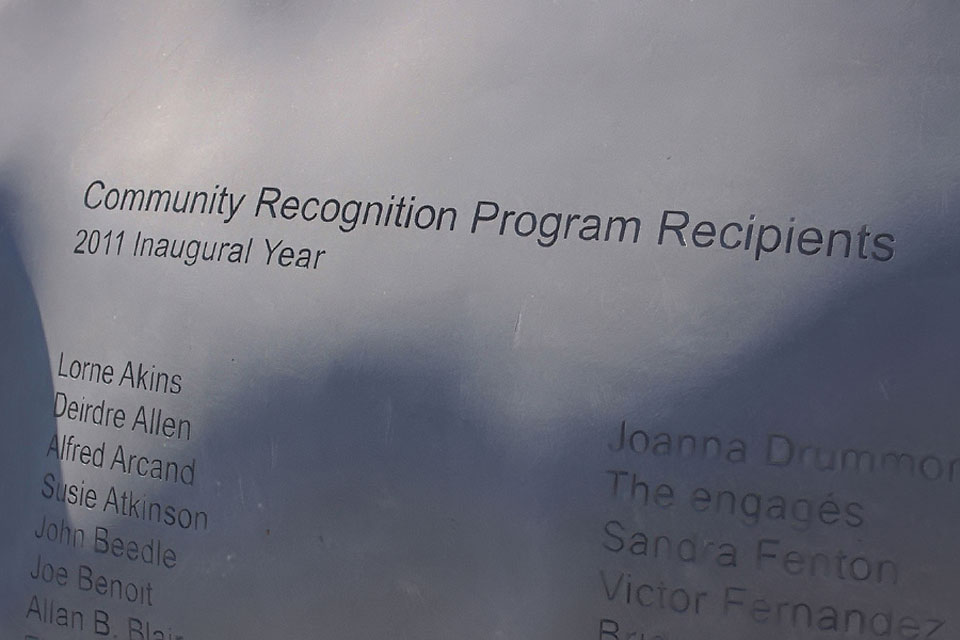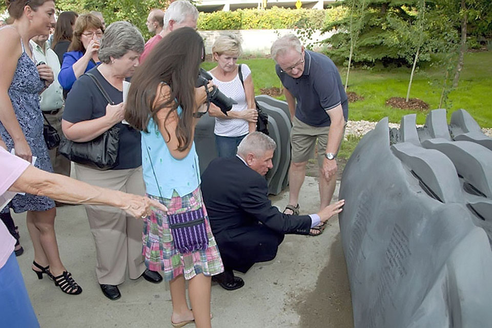 All human activity, constructive or destructive, has wave-like properties because it radiates outward from its source to influence everything around it, like ripples on a pond. These sculptures pay homage to those whose actions have made a positive impact on others and, in so doing, have made their city a wonderful place in which to live.