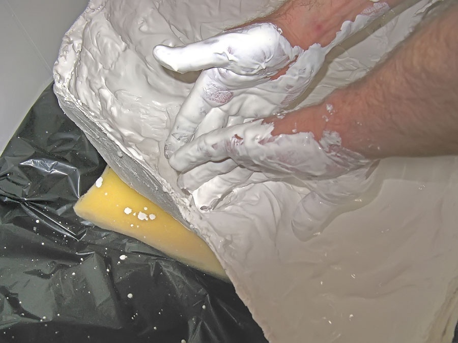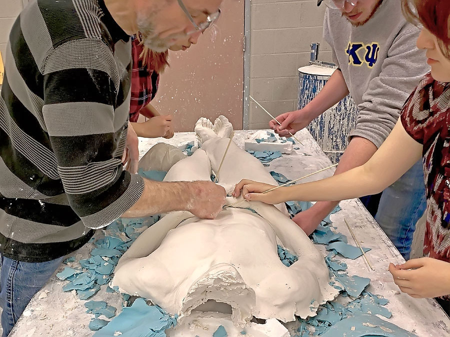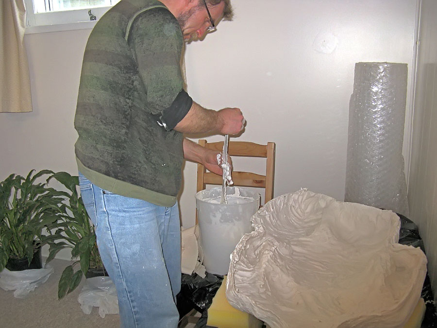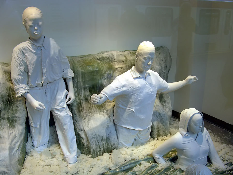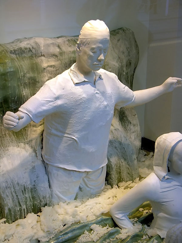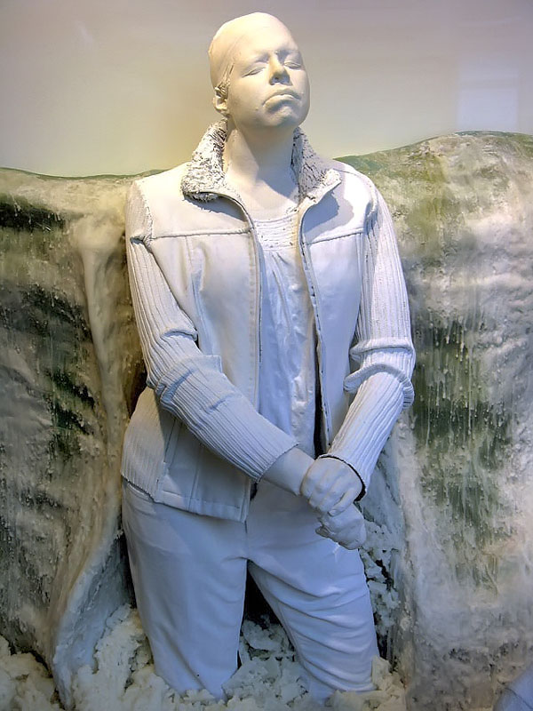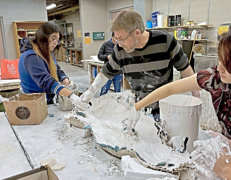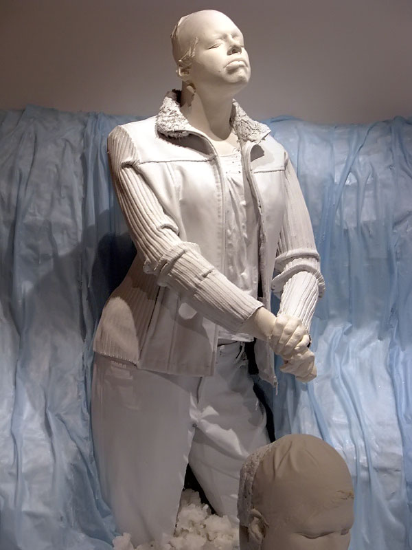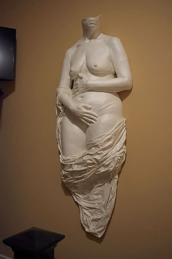 The public art space titled, OPEN SPACES: Window to a View is an ideal location for an art installation that speaks to the experience of taking public transit. I worked with sixty-five artists from Studio C for several months to create life-cast figure sculptures for this space. We made many plaster casts of our limbs and our faces and then attached them to armatures that resembled torsos at various stages of sinking into an imaginary aquatic medium. The end result was a dynamic installation of realistic human forms amidst an undulating surface that resembled roiling ocean waves. Finally, to metaphorically connect public transit to our depiction of individuals merging into an angry sea, we titled the artwork Rush Hour (also a nod to one of the fathers of lifecasting, George Segal).